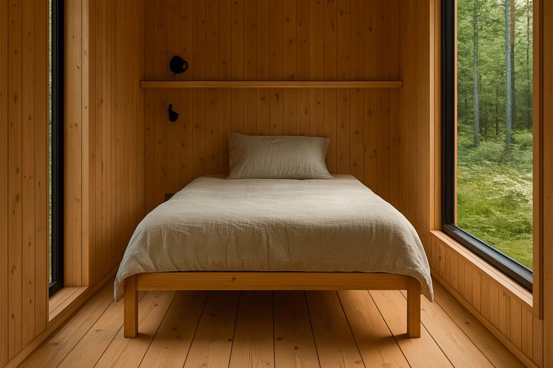 Välisseinad on valmistatud kuuse voodrilauast, mille tooni saab klient ise valida. Lauad on värvitud värvikambris, mis tagab kõrge kvaliteedi.